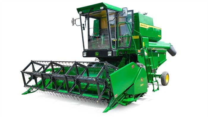 约翰迪尔 W100 自走式联合收割机,采用技术成熟的切流滚筒+逐稿器式脱粒分离机构,可收获小麦和杂粮等易脱粒作物,且分离出的茎秆质量好。更换配置后可收获玉米籽粒和大豆,具有高效率、多作物收获的特点,用户回收投资成本快,是较为理想的致富工具。不使用尿素的约翰迪尔4045 PWX发动机,额定功率为 141 马力。在大负荷作业时,恒定的发动机转速保证了各工作模块系统转速稳定,使得喂入顺畅、脱粒充分、分离彻底、清选干净,实现优异的作业效果。